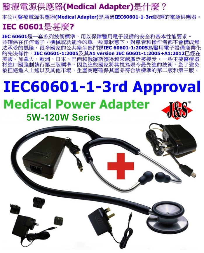 HOME > 產品介紹 > EN60601醫療設備應用電源供應器100W 12Vdc 8.3A C8接頭